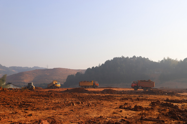 圖為豐園安置基地來來往往的土石方運(yùn)輸車輛。